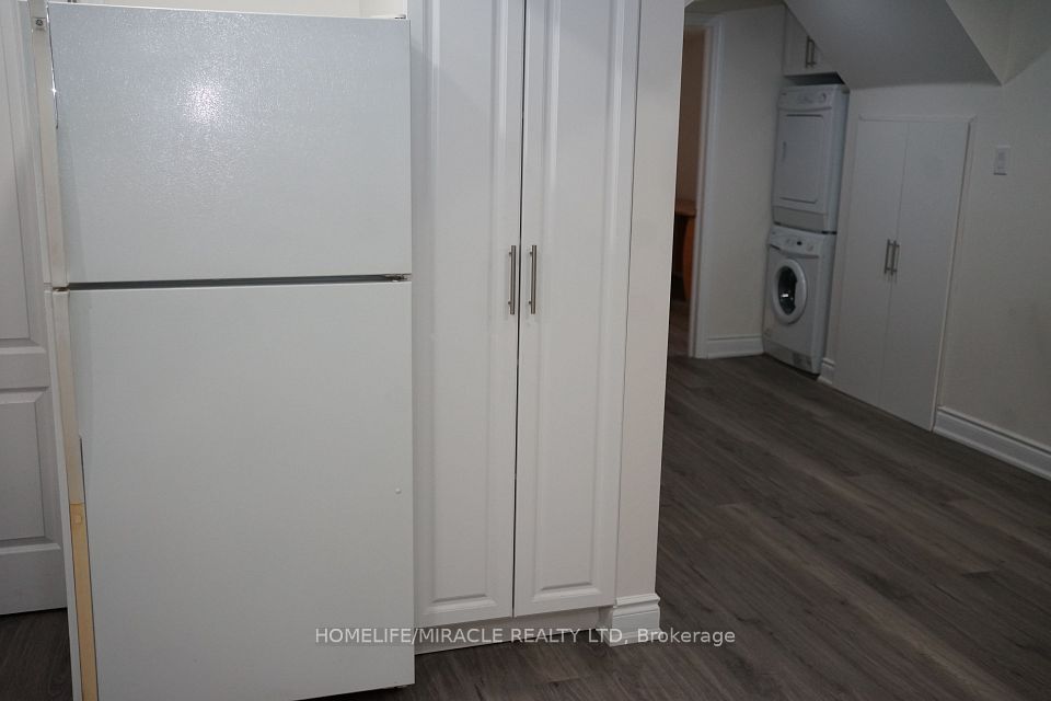 Legal basement apartment located in the high demand area of Mavis/Bristol with a separate entry. Two large bedrooms with ample storage space. Modern open concept kitchen with quartz countertop, backsplash and clean Stainless Steel appliances including a dishwasher. All utilities included. Independent in-suite laundry. Wooden flooring , no carpet through out the apartment. A sun filled apartment with large egress windows. Additional comfort of central vacuum. One parking. Perfect for a couple or a small family. The unit is located close to many top rated schools and grocery stores. Many convenient transit connections are available.