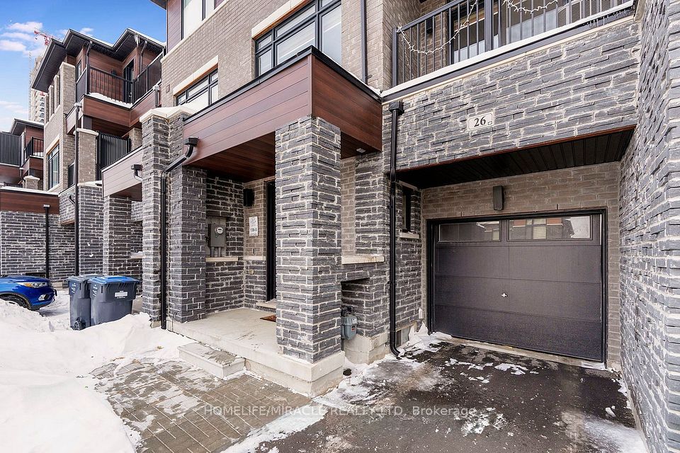 Prime Location Freehold 3-Storey Townhome In A Highly Sought-After Location Near Gore Rd & Hwy 7 With Quick Access To Hwy 427. Steps To Shopping, Schools, Transit, Restaurants & All Everyday Amenities.Bright & Functional Layout With An Open Concept Main Living Area Flowing Into A Modern Kitchen Featuring Quartz Countertops & Stainless Steel Appliances. Offers 2 Spacious Bedrooms, A Versatile Ground Floor Den & 3.5 Bathrooms With Sleek Laminate Flooring Throughout.Finished Basement With Open Concept Layout, Full Bathroom, Wet Bar & Walk-In Closet Ideal For Extended Family Or Additional Living Space.Two Private Balconies Perfect For Relaxation. Parking For 3 Vehicles With An Attached Garage & Private Driveway.A Turnkey Home Offering Comfort, Flexibility & Convenience.